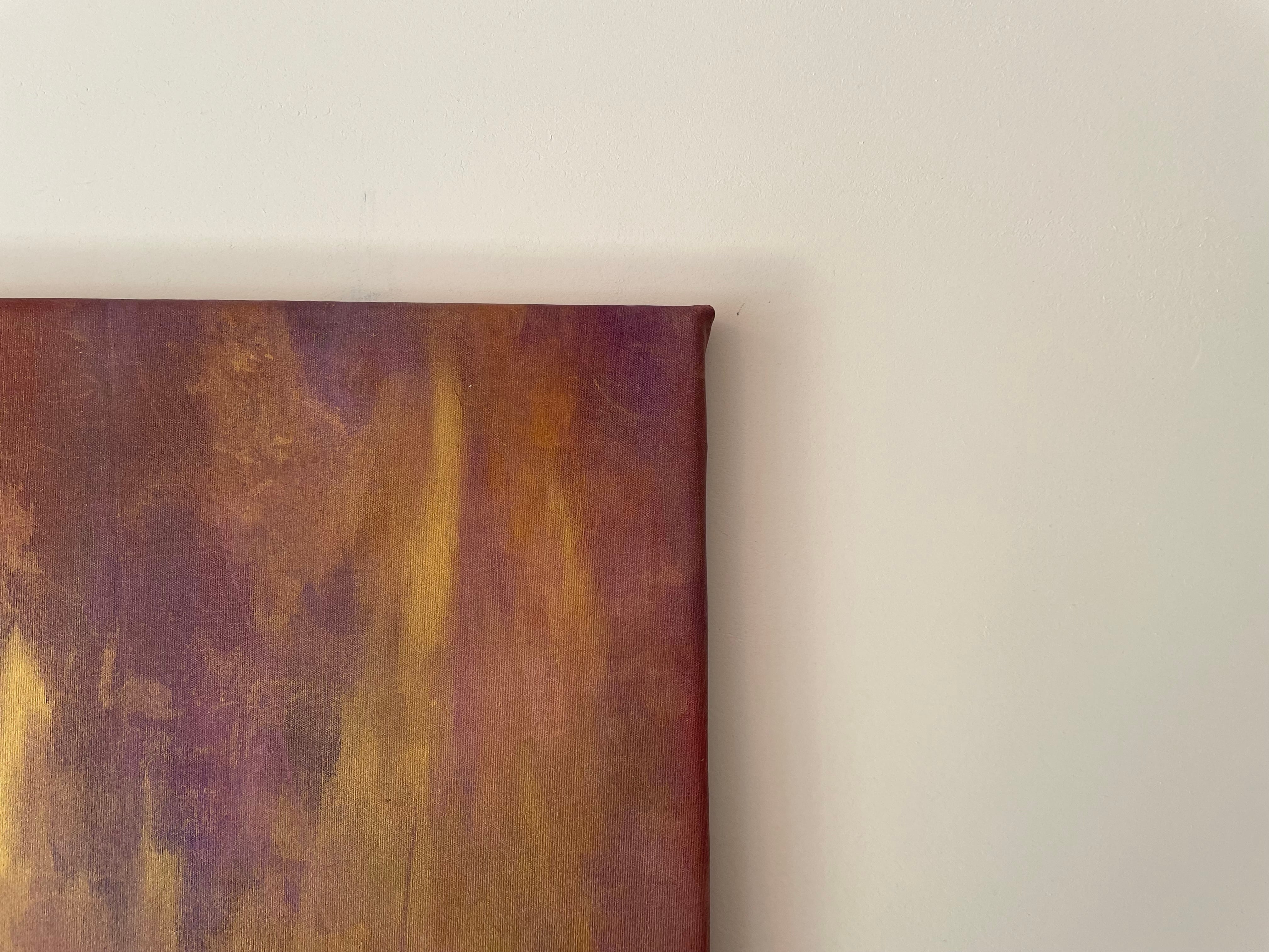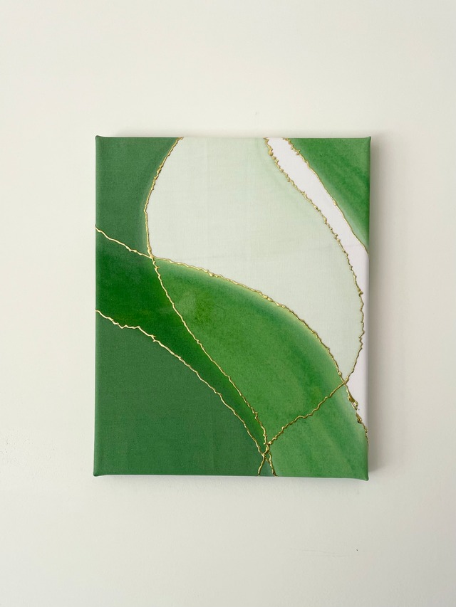 伝統的なぼかしの技術を使って染めたアートパネル。 金の線が静かに艶をまとっています。 サイズ 27cm ×22cm × 1.5cm